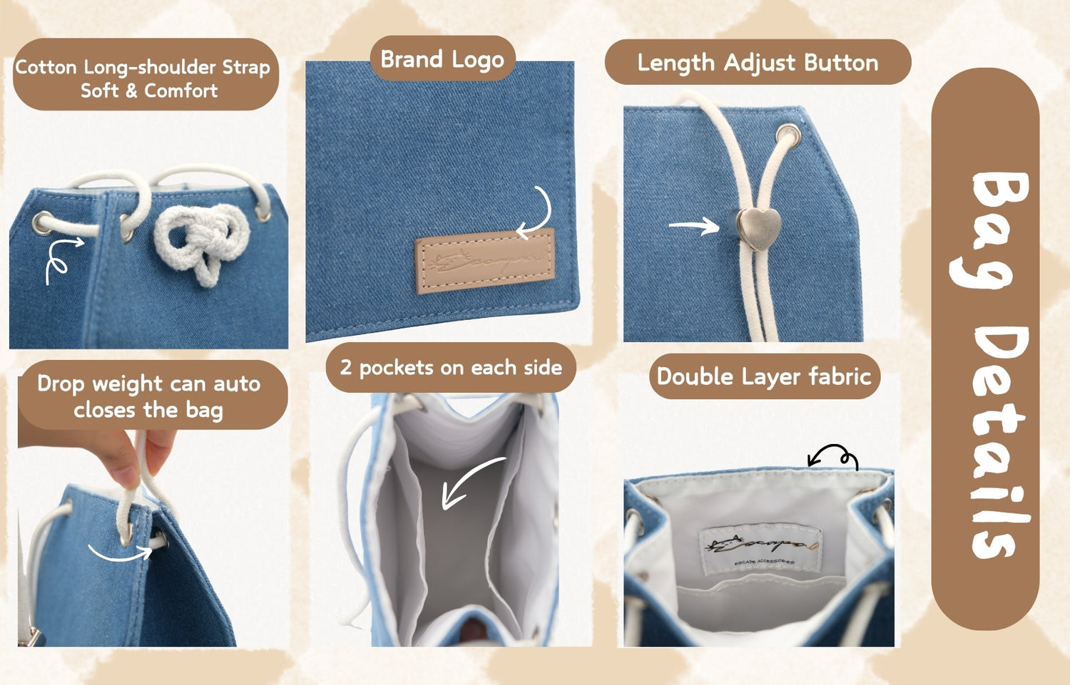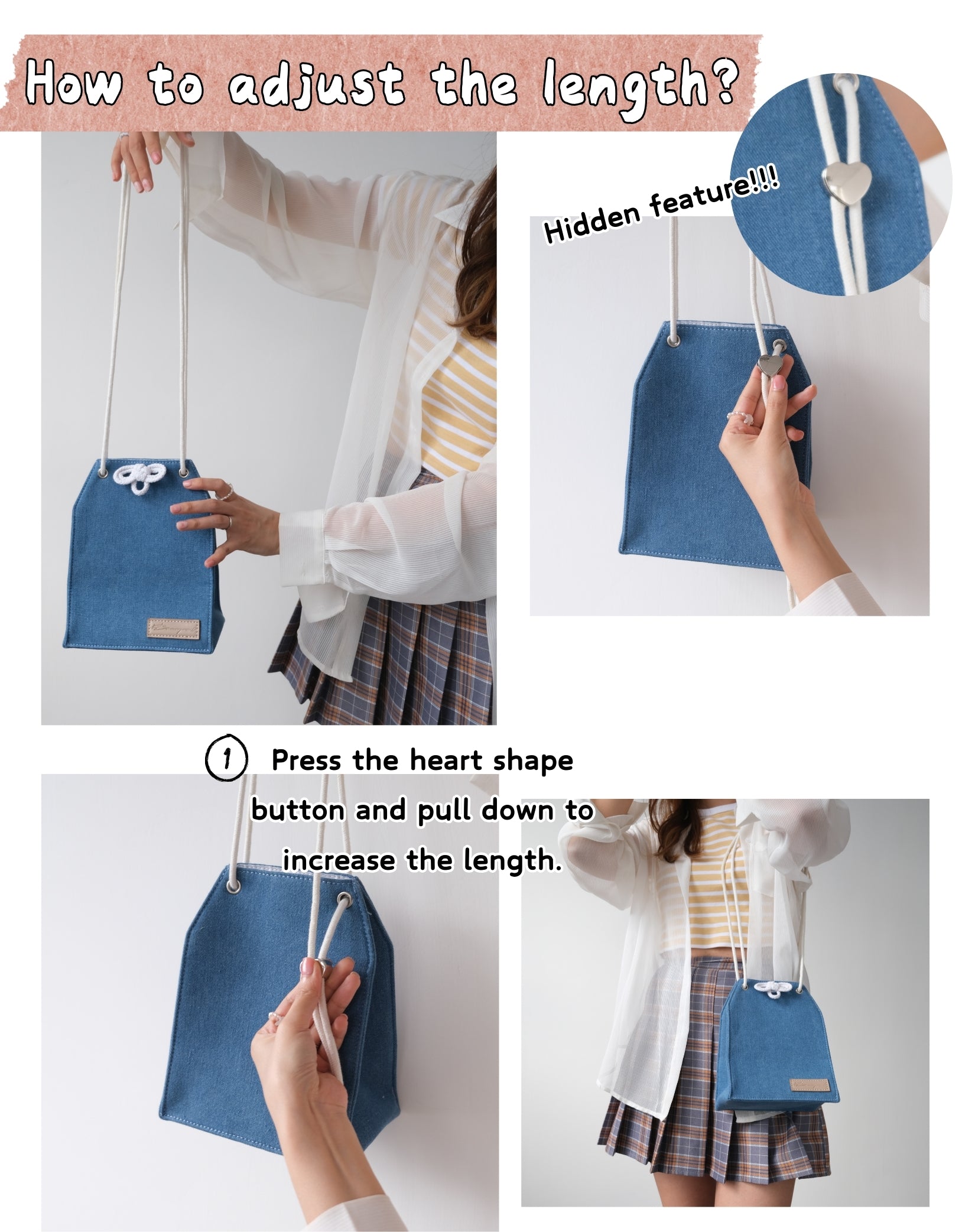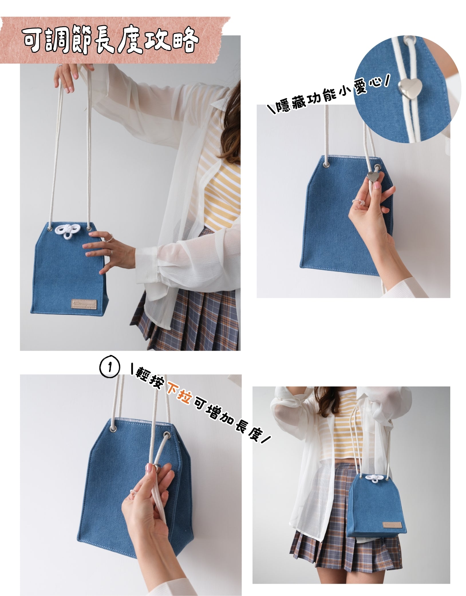A four-season matching cloth bag, a never-ending denim fabric, and one of the most creative designs. Crash out of a new spark! Denim Omamori Bag Series gives you a breath of youthful vitality (๑•̀ᄇ•́) و✧ Fit for eceryday dressing style"